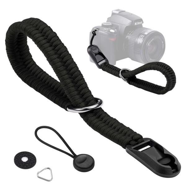 (Yullmu) カメラストラップ カメラ ハンドストラップ パラコード編み アンカーリンクス 三角リング付き 一眼レフ・ミラーレス用 黒