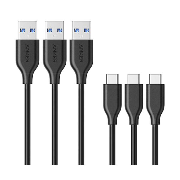 アンカージャパン ANKER PowerLine USB-C&USB-A 3.0 ケーブル 0.9m ブラック 1パック(3本) 目安在庫=○