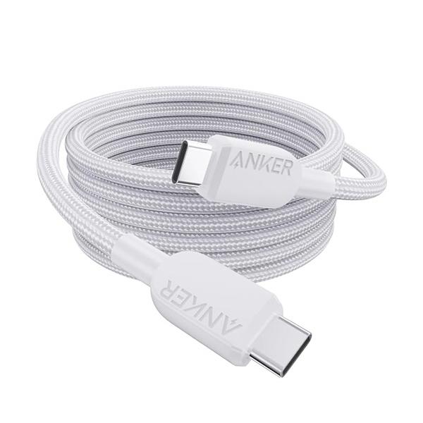 アンカージャパン ANKER USB-C&USB-C ケーブル(高耐久ナイロン) 1.8m ホワイト 1本 目安在庫=○