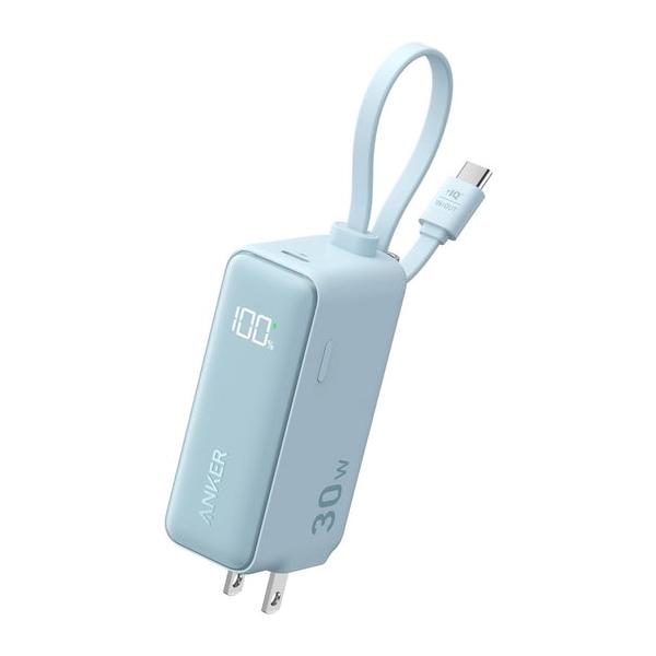 [在庫処分] アンカーAnker Power Bank (30W, Fusion, Built-In USB-Cケーブル) ブルー モバイルバッテリー USB急速充電器 ケーブル一体型 5000mAh A1636N31||