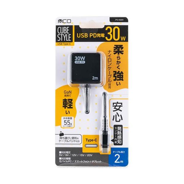 MCO USB Type-C ケーブル一体型PD充電器 GeN 30W 2m JYU-AC0120BK ( 1個 )