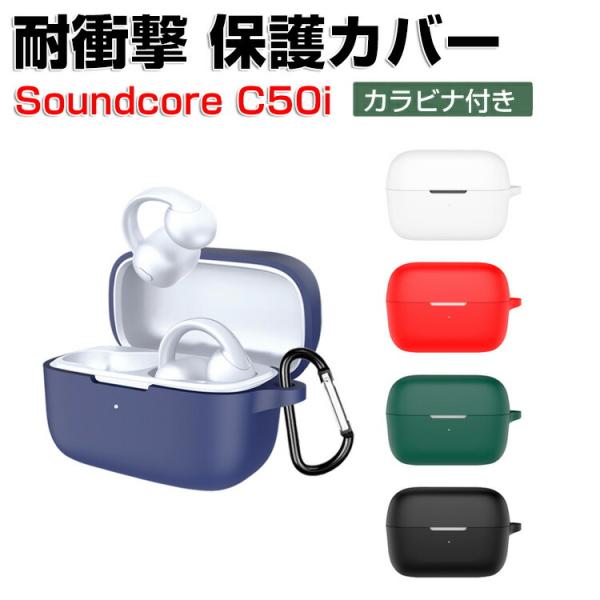 - Anker Soundcore C50i ケース 柔軟性のあるシリコン素材 カバー イヤホン・ヘッドホン アクセサリー CASE 耐衝撃 落下防止 収納 保護 おしゃれ アンカー サウンドコア C50i ソフトケース 便利 実用 カバーを装着したまま、充電タイプ可能です カラビナ付き