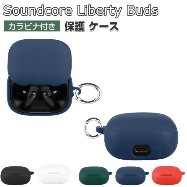 Anker Soundcore Liberty buds ケース 耐衝撃 カバー イヤホン・ヘッドホン 落下防止 収納 保護 サウンドコア リバティ バッズ ソフトケース カラビナ付き