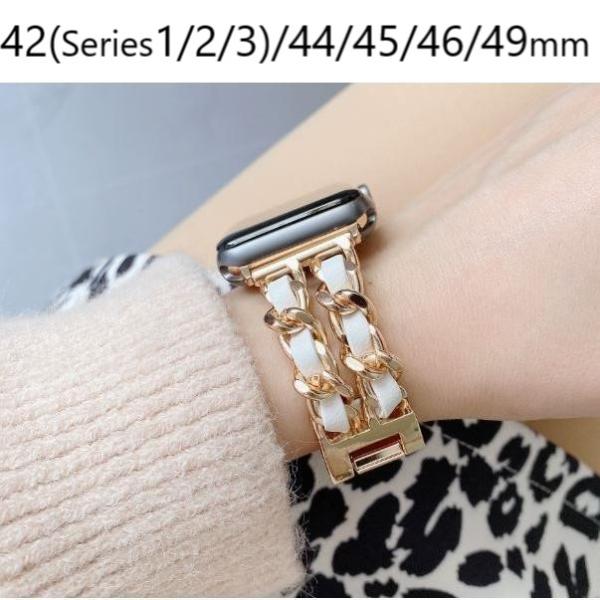 アップルウォッチ バンド ステンレス チェーン 革 10 46mm ウルトラ SE 白 黒 ゴールド かわいい かっこいい ビジネス フォーマル
