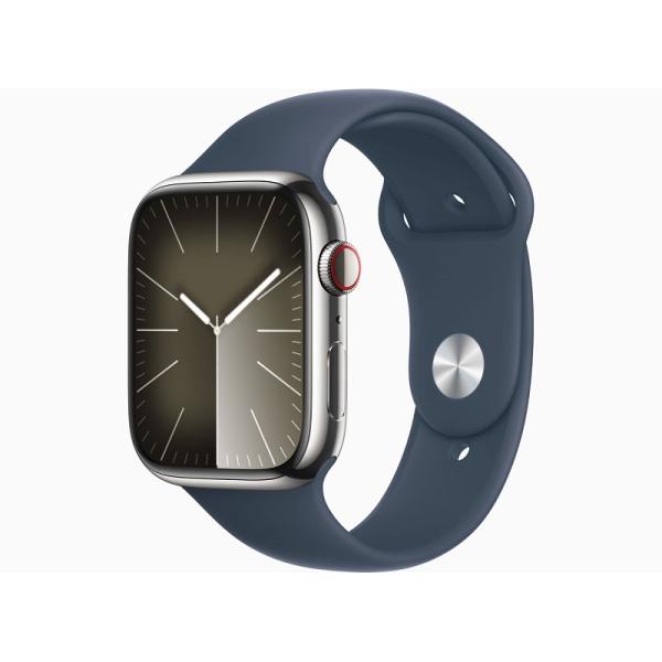 [中古(未使用買取品)] Apple Watch Series 9 GPS+Cellularモデル 45mm MRMN3J/A (シルバーステンレススチールケース/ストームブルースポーツバンド S/M)