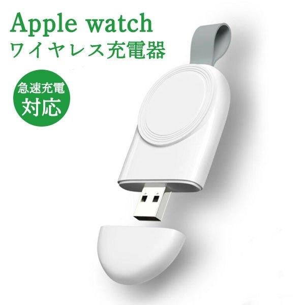 アップルウォッチ 充電器 ワイヤレス USB Apple Watch SE 6 5 4 3 2 1 アップル ウォッチ 急速充電 Qi充電 カバー 付き マグネット コンパクト 軽い