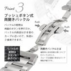 3連のシンプルなステンレスベルト。中央パーツにカーボン素材を組み合わせ、アクセントを加えたデザインです。プッシュボタン式の両開きのバックルを採用しており、高級感のあるモデルです。