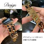Apple Watch アップルウォッチ バンド 女性 レディース ダブルチェーン ブレスレット レザー 革 おしゃれ シリーズ10 11 SE 38mm 40mm 41mm 42mm 44mm 45mm 46mm