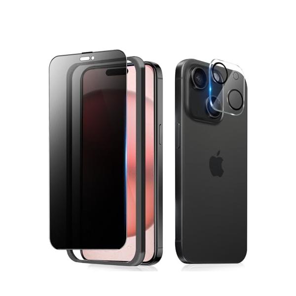 360°覗き見防止iPhone15 ガラスフィルム 覗き見防止 360度 + iphone15 カメラフィルム iphone15 保護フィルム