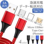 4点セット 3in1強力マグネット 3A高速充電 データ転送対応 1m アンドロイドスマホ iPhone タブレット iPad ライトニング type-c micro USB 充電ケーブル