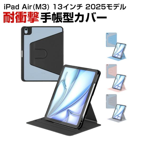 - アップル Apple iPad Air 13インチ (M3チップ) 2025年春モデル ケース カバー タブレットケース 耐衝撃カバー CASE オートスリープ 手帳型カバー Pencil収納機能 スタンド機能 PUレザー ブックカバー 透明背面カバー