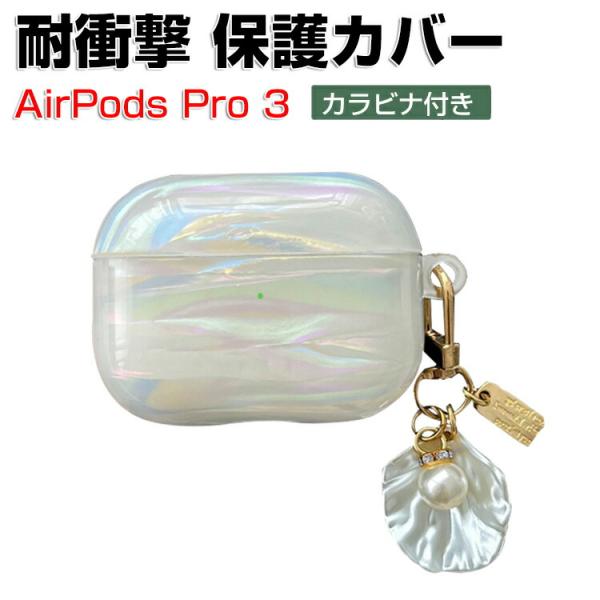 アップル エアーポッズ プロ 第3世代 用TPU素材のケース AirPods Pro 3 ソフトケース カラフル 貝殻風模様 耐衝撃 落下防止 CASE 人気 カバー カラビナ付き