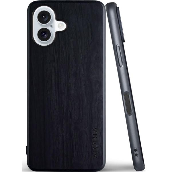 Aioria スマホケース iPhone 16 互換性ありウッドパターン スタイリッシュで丈夫な携帯電話ケース あふれる 木目柄 保護 (Black,