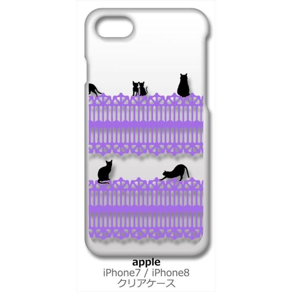 iPhone SE2 ケース iPhone8 iPhone7 Apple アイフォン クリア ハードケース 猫 ねこ ネコ おさんぽ 黒猫パープルレース スマホ ケース スマートフ