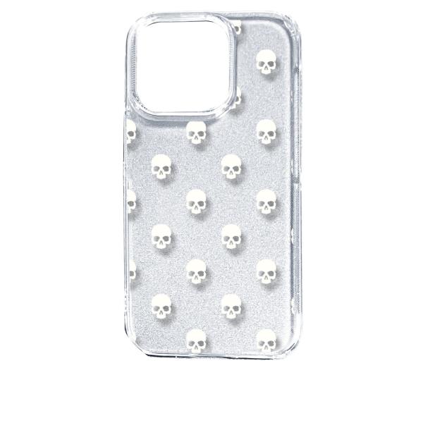 iPhone14 Pro アイフォン14プロ クリア ハードケース スカル ドクロ 骸骨 ドット ホワイト スマホ ケース スマートフォン カ