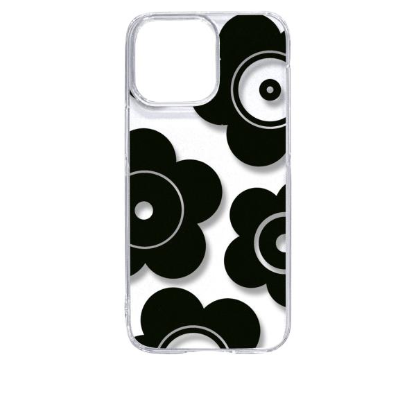 iPhone15 Pro Max アイフォン15プロマックス クリア ハードケース t026-ブラック 花柄 マリメッコ風 スマホ ケース スマートフォン カバー