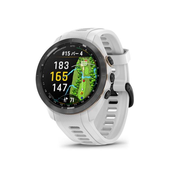 - ゴルフがあなたの世界なら、これこそがあなたが求める相棒のウォッチです。Approach S70は、コース内外であなたのゲームを向上させるために必要なツールやインサイトを備えた、プレミアムGPSゴルフウォッチです。【鮮やかなAMOLEDディスプレイ】高輝度で見やすいAMOLEDタッチディスプレイによっては、あなたのゲームをまったく新しい視点で見ることができます。【43,000のコースをプリロード】全世界43,000以上のコースがウォッチにプリロードされています。日本国内はもちろん海外でのプレーも安心です。【進化したバーチャルキャディー】風向き、標高、スイング・データなどに基づいて、使用クラブを提案してくれます。また、新しいショット・ディスパージョン・チャートでは、クラブ選択によってどのようなハザードがあるのかを素早く表示することができます。【PLAYSLIKE DISTANCE(高低差情報)】コースの高低差を考慮した推奨距離を表示します。ワンタッチで高低差を加味しない水平距離に変更も可能です。【スポーツアプリ】ランニング、ウォーキング、ゴルフ、バイク、登山、水泳、筋トレなど、豊富なアクティビティプロフィールが搭載されています。【風速/風向き表示】ウォッチに風速と方向が表示されるので、どのクラブを使用してどの方向にスイングするかが簡単に分かります。【グリーンビュー】グリーンの形状やレイアウトを表示します。手動でピン位置の調整も行えます。【クラブトラッキング】Approach CT10クラブトラッキングセンサー(別売)で、ラウンド中のすべてのショット位置、飛距離2、使用クラブの番手を記録し、アプリ上でラウンドデータとして確認することができます。【ピンポインター】ピンの方向を表示してくれるので、ブラインドショットでも安心してピン方向を狙うことができます。【ハザードビュー】コース全体のハザードの位置を一覧に表示し、見えないハザードの把握に役立ちます。【グリーンまでの距離】グリーンのフロントエッジ/センター/バックエッジまでの距離を素早く参照できるので、思い通りのショットが打てます。【光学式心拍計】光学式心拍計を備えており、アクティビティ中や平常時の心拍数3の変動を測定し、ストレスレベルを計算します。水泳中でも心拍数をトラッキングします。【Body Battery エネルギーモニター】Garmin独自の機能であるBody Batteryでは、身体的エネルギーの残量、つまり「カラダのバッテリー残量」を測定できます。数値は5-100 で表示され、スコアが大きいほどその日の活動や運動に費やすことのできるエネルギーが十分にあることを意味します。反対にスコアが低いほど体力を温存して休息をとる必要性を示します。【睡眠スコア付きの先進の睡眠モニタリング】睡眠段階の分析に加えて、睡眠中の心拍数や血中酸素レベル、呼吸数をトラッキングすることができます。睡眠の質をスコアで確認し、改善のためのアドバイスを受け取ることもできます。【血中酸素トラッキング】血中酸素トラッキング4では、血液中に取り込まれた酸素のレベルを手首で測定することができます。 疲労と回復のパラメータにもなり、パフォーマンスやフィットネスレベルの向上とウェルネスライフをサポートします。【ロングバッテリー】一度の充電でスマートウォッチモードで約10日間、GPSモードで約15時間稼働します。【ウォッチに音楽を保存】Spotify、Amazon Music、LINE MUSICなどの音楽配信サービスからプレイリストを同期してウォッチに保存できます(各ストリーミングサービスのサブスクリプション契約が必要です)。Bluetoothイヤホン(別売)を使って、スマートフォンなしで音楽を再生できます。【Garmin Pay/Suica タッチ決済】提携プロバイダを通した Garmin Pay の非接触型決済ソリューションを利用することで、決済を簡単に行えます。Suica対応で、買い物や電車での移動もスムーズです。 【rb_remp】