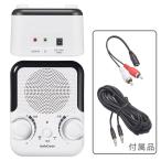 - ※電池別売(アルカリ)単3×3本・乾電池式・テレビの音がはっきり聞こえる・ゆとりある5mロングコード主な特長テレビの音がはっきり聞こえる、お手元スピーカー。ドラマ、映画、バラエティ、ニュースなど、会話や人の声が聞き取りやすい音質ダイヤル(音質の周波数帯域の高低を調節)、音量ダイヤル付き実用最大出力1W、口径65mmスピーカー電池長持ち、55時間連続使用ゆとりある5mロングコード乾電池式(単3形乾電池3本 ※別売)付属の変換アダプター(RCA白/赤プラグ−φ3.5ステレオミニジャック)使用で、テレビと本機両方から音声出力できます。こちらの商品は「ひと家族様3点限り」となります。同一お届け先、同一名義による4点以上のご注文、または当店が転売目的と判断した場合、ご注文を取消しさせていただく場合がございます。●電源:乾電池…DC4.5V 単3形乾電池×3本(別売)、外部電源入力…DC4.5V 500mA(ACアダプター別売)●実用最大出力:1W×1●スピーカー:口径65mm×1/インピーダンス4Ω●接続端子:φ3.5mmステレオミニプラグ(コード長●乾電池持続時間:スピーカー55時間、イヤホン200時間●外形寸法:幅109×高さ66×奥行153mm(突起物含まず)●質量:265g(乾電池含まず)●付属品:変換アダプター、ロングコード、保証書、取扱説明書