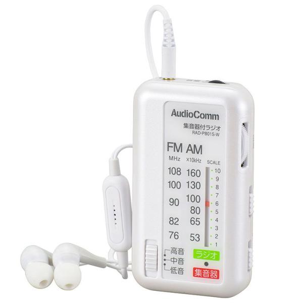オーム ワイドFM/ AM 集音器付きラジオ AudioComm OHM RAD-PB01S-W 返品種別A