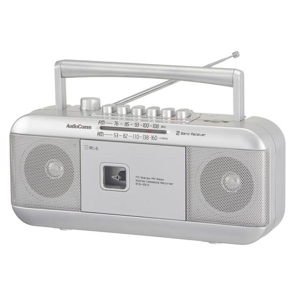 OHM オーム電機 ステレオラジオカセットレコーダ(口径77mmスピーカー2基/ワイドFM/11W/シルバー) RCS-551Z