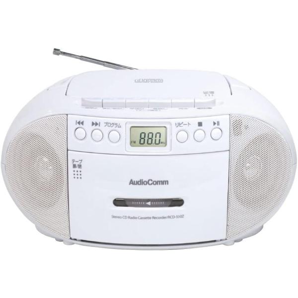 OHM オーム電機 CDラジオカセットレコーダー(口径66mmスピーカー2基/2電源/AC100V、単2形×6本使用/ワイドFM/15W/ホワイト) RCD-590Z-W