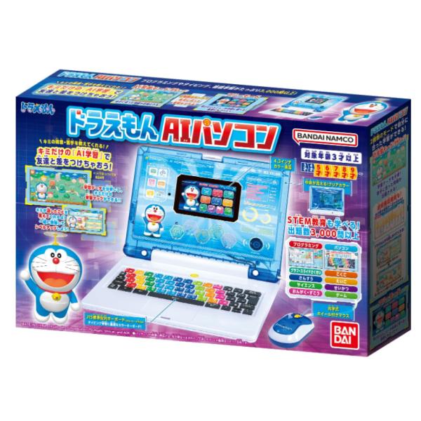 - 商品情報魅力その1キミの得意・苦手を教えてくれる!キミだけの「AI学習」で友達と差をつけちゃおう!学習データを分析して、キミだけの最適なメニューを提案してくれる「AI学習モード」を搭載。魅力その2キミが話したことを覚えてくれるよ!ドラえもんといっしょに勉強してレベルアップしよう!魅力その3ドラえもんと声で遊べるボイスゲームや、クイズあそびも楽しめる!※「AI」機能とは、お子様のレベルチェックテスト結果と学習履歴を分析して出題する機能、お子様が選ぶ選択肢に応じて質問を変えることで会話を演出する機能等を意味します。[セット内容]パソコン本体(マウス付き)…1個・取扱説明書…1枚[使用電池]・単3乾電池×4本(別売り)・別売りのバンダイACアダプターBタイプ対応ドラえもんAIパソコン【日本おもちゃ大賞2024エデュケーショナル部門優秀賞】 ★アダプター付き★ バンダイ(BANDAI) 『ドラえもん』より「ドラえもんAIパソコン」が登場!プログラミングやタイピングの他、こくご、さんすう、えいごなどの基礎学習を含む全10カテゴリーから3,000問以上を出題! 商品紹介「ドラえもんAIパソコン」で学習と遊びを融合!「ドラえもん」から生まれたこのAI搭載パソコンは、プログラミングやタイピングだけでなく、国語、算数、英語など基礎学習を含む全10カテゴリーから3,000問以上の問題を提供します。学習を楽しく、効率的に進めましょう。魅力その1:「 AI学習モードで最適な学習計画を提案!」AIがあなたの得意・苦手を分析し、最適な学習メニューを提案します。友達と差をつけるための「AI学習」で、自分だけの学習スタイルを確立しましょう。魅力その2: 「ドラえもんと一緒に学習を進めよう!」ドラえもんがあなたの話を覚えてくれるので、一緒に勉強してレベルアップしましょう。声で遊べるボイスゲームやクイズも楽しめます。魅力その3: ボイスゲームやクイズで楽しみ尽くせ!ドラえもんと一緒に声で遊べるボイスゲームやクイズあそびを楽しむことができます。AI機能により、会話を演出しながら学習を進めます。セット内容:・パソコン本体(マウス付き) 1個・取扱説明書 1枚・互換アダプター付き ※本来は付属されていません。<注意>本商品のセット内容以外は付属しません。電池のみでの稼働の際に必要となる、単3乾電池×4本は別売りとなります。 5