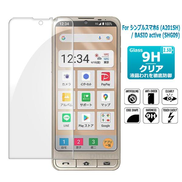 シンプルスマホ7 / シンプルスマホ6 / BASIO active / BASIO active2 フィルム 保護フィルム 液晶保護ガラスシート 高光沢タイプ 強化ガラスフィルム