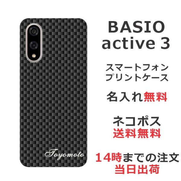 BASIO active3 KYG04 ベイシオアクティブ3 らふら 名入れ スマホケース カーボン ブラック