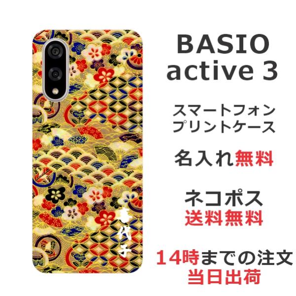 BASIO active3 KYG04 ベイシオアクティブ3 らふら 名入れ スマホケース 和柄 千代紙ゴールド