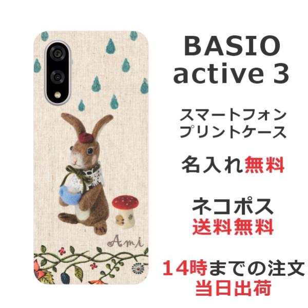 BASIO active3 KYG04 ベイシオアクティブ3 らふら 名入れ スマホケース 雨降りうさぎ