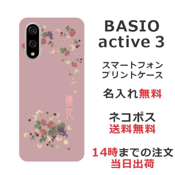 BASIO active3 KYG04 ベイシオアクティブ3 らふら 名入れ スマホケース 和柄 和花イチゴ