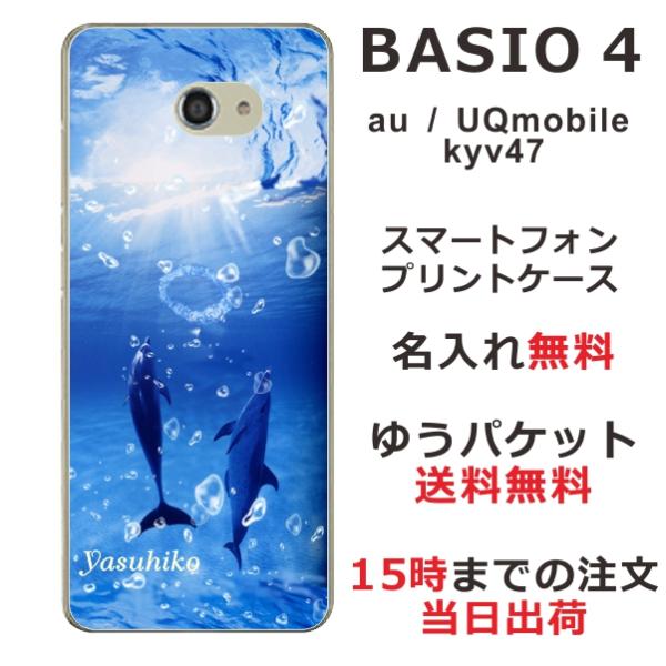 BASIO4 KYV47 ベイシオ4 らふら 名入れ スマホケース ドルフィン リング
