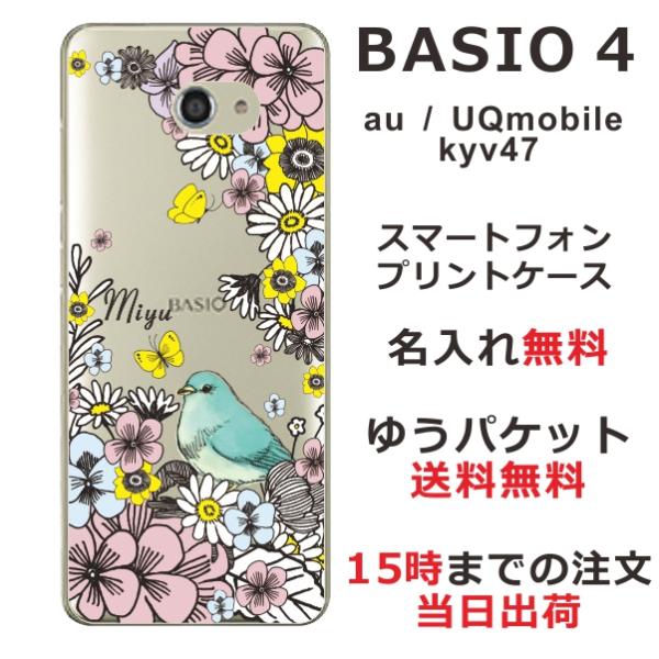 BASIO4 KYV47 ベイシオ4 らふら 名入れ スマホケース フラワーバード