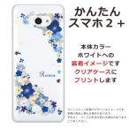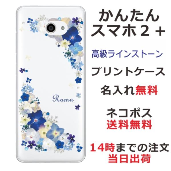 かんたんスマホ2+ ケース A001KC カバー ラインストーン かわいい フラワー 花柄 らふら 名入れ 押し花風 ビビットブルーフラワー