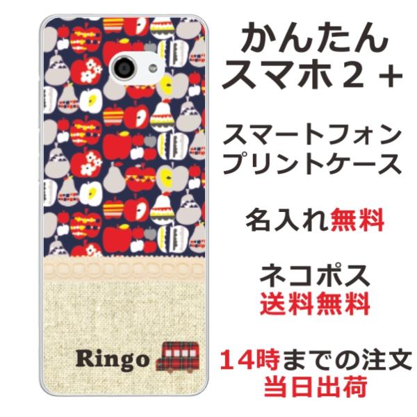 かんたんスマホ2+ ケース A001KC カバー らふら 名入れ 北欧デザイン フルーツ ネイビー