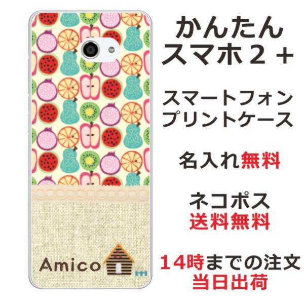 かんたんスマホ2+ ケース A001KC カバー らふら 名入れ 北欧デザイン フルーツ カラフル