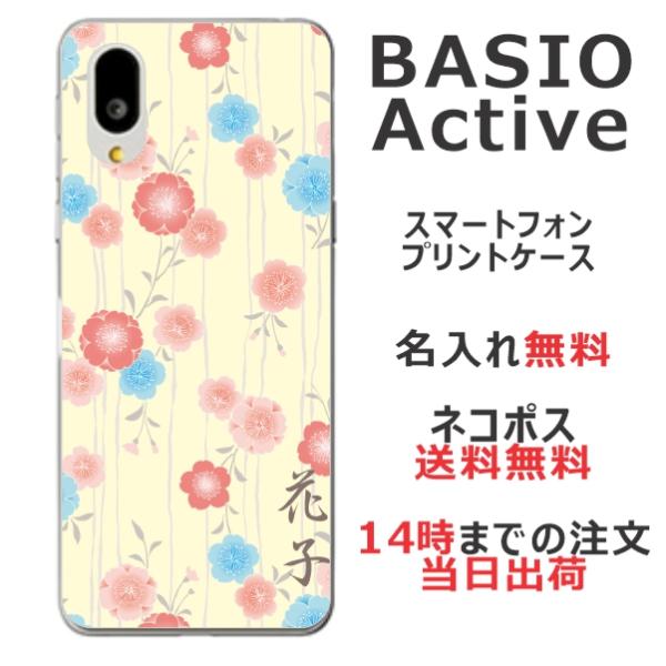 BASIO Active SHG09 ベイシオアクティブ らふら 名入れ スマホケース 和柄 花 淡桜