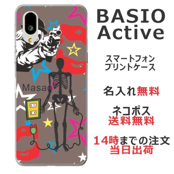 BASIO Active SHG09 ベイシオアクティブ らふら 名入れ スマホケース 狙われたドクロ