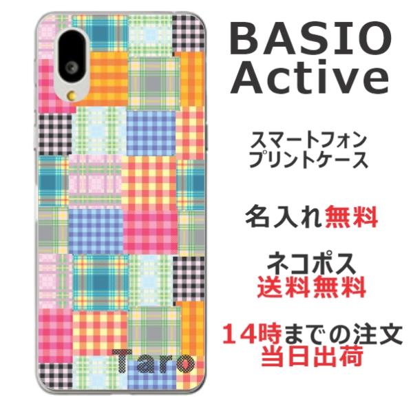 BASIO Active SHG09 ベイシオアクティブ らふら 名入れ スマホケース カラフル チェック