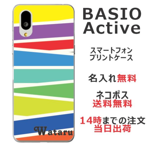 BASIO Active SHG09 ベイシオアクティブ らふら 名入れ スマホケース パステル ライン