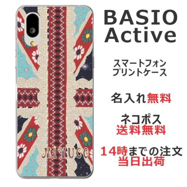 BASIO Active SHG09 ベイシオアクティブ らふら 名入れ スマホケース ユニオンジャック レース