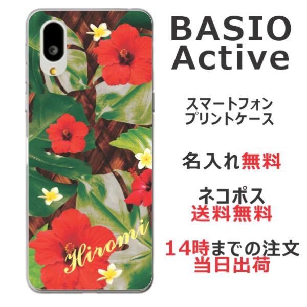 BASIO Active SHG09 ベイシオアクティブ らふら 名入れ スマホケース ハワイアン ハイビスカス
