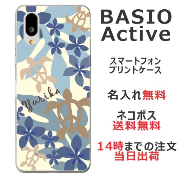 BASIO Active SHG09 ベイシオアクティブ らふら 名入れ スマホケース ハワイアン ネイビー ホヌ