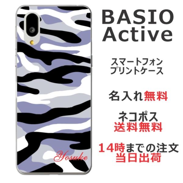 BASIO Active SHG09 ベイシオアクティブ らふら 名入れ スマホケース 迷彩 モノトーン