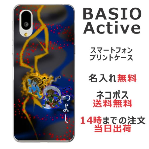 BASIO Active SHG09 ベイシオアクティブ らふら 名入れ スマホケース 和柄 風神雷神