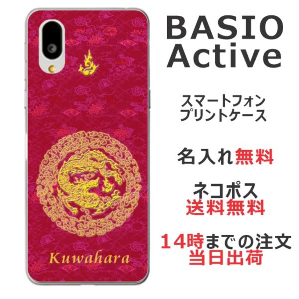 BASIO Active SHG09 ベイシオアクティブ らふら 名入れ スマホケース 和柄 円龍赤