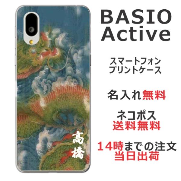 BASIO Active SHG09 ベイシオアクティブ らふら 名入れ スマホケース 和柄 昇龍碧