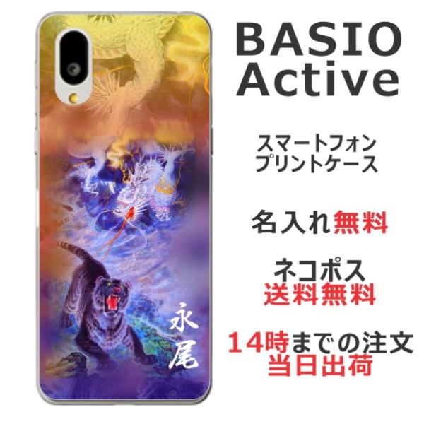 BASIO Active SHG09 ベイシオアクティブ らふら 名入れ スマホケース 和柄 龍虎蒼橙