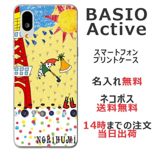 BASIO Active SHG09 ベイシオアクティブ らふら 名入れ スマホケース お天気雨お散歩