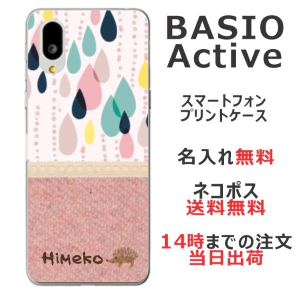 BASIO Active SHG09 ベイシオアクティブ らふら 名入れ スマホケース 北欧デザイン ピンク しずく